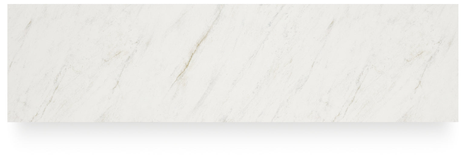Details Made with engineered wood (MDF/particleboard/plywood) and decorative laminate for the right balance of affordability and durability, Matte black finish with subtle replicated wood grain, Replicated white marble top, Decorative laminate replicates natural or man-made material surfaces with consistent color, pattern and texture, Handles with light bronze-tone finish, Open shelf, 2 smooth-gliding drawers, Drawer interiors are lined with a faux linen laminate for a clean, finished look, Ambient lighting under the top, Power cord included; UL Listed, Minor assembly required